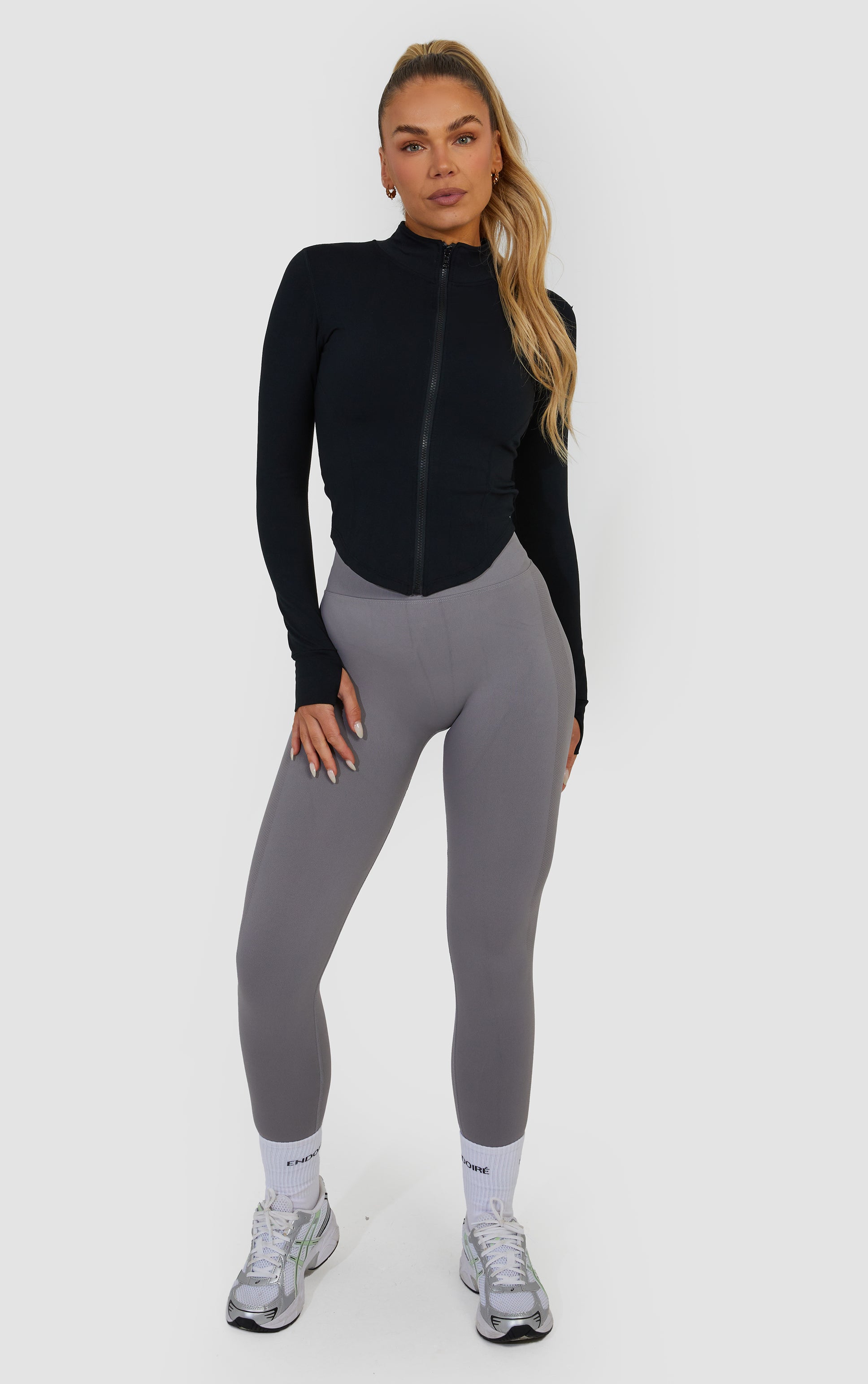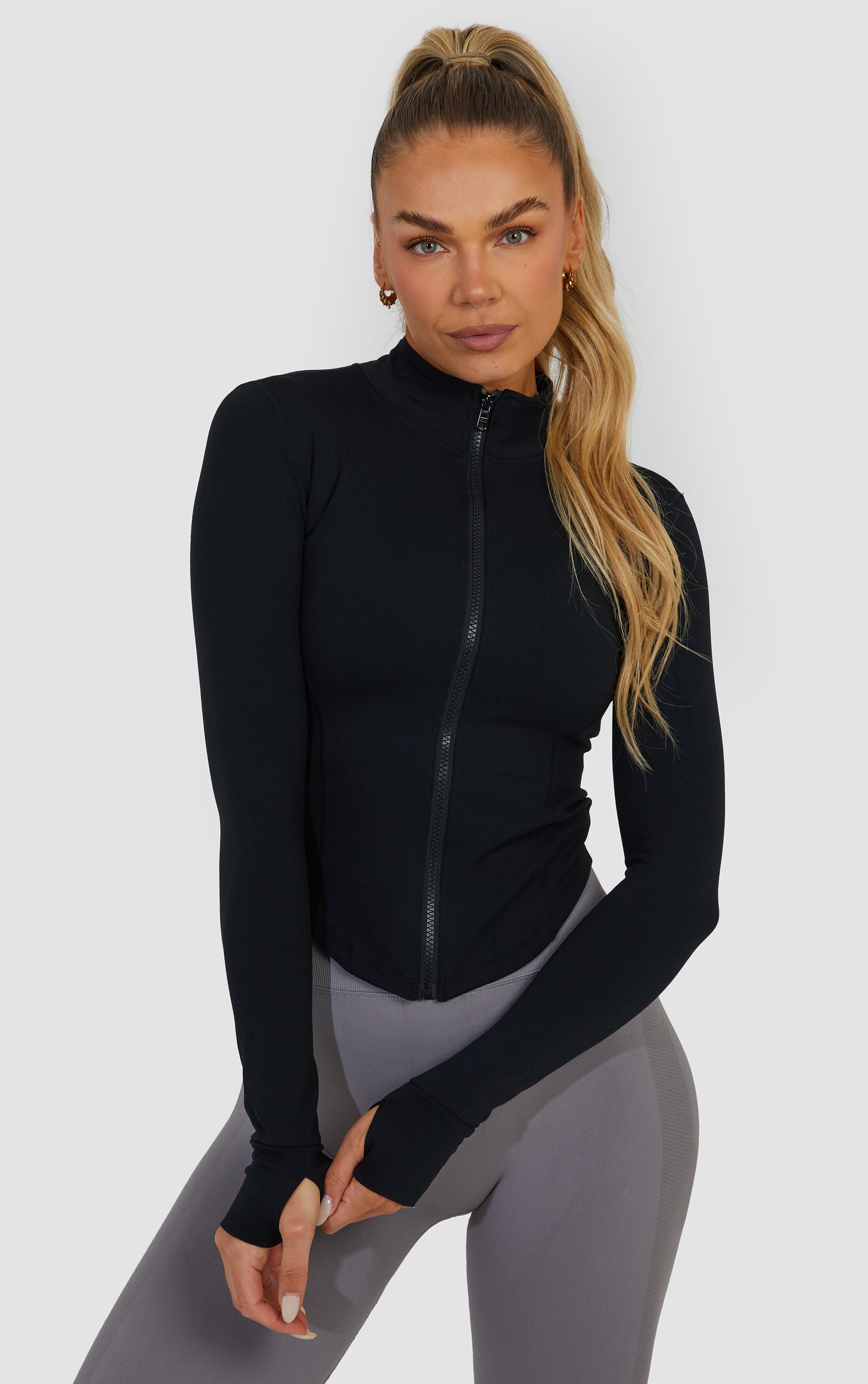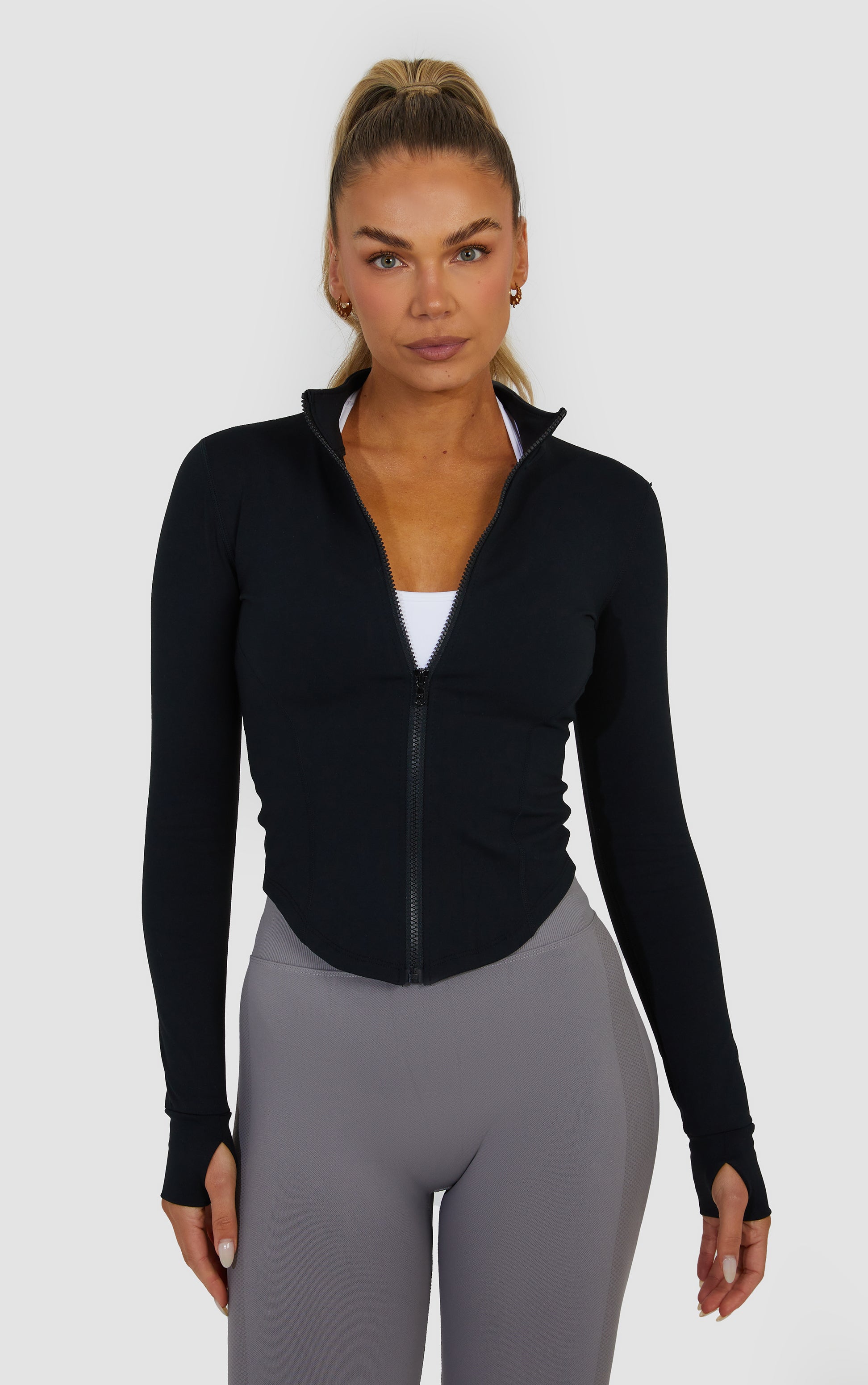 Introducing the STAPLE piece, made to contour not cover. Physique-accentuating designs and a second skin feel. The jacket you will want to wear anywhere and everywhere. Pair with our cross back bra for the perfect combo. The perfect addition to your rest day or gym fit.